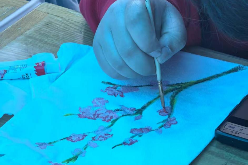 在植物标本拓印活动中,大家拾起一片绿叶,捡起一朵落花,随着"笃笃"轻响,花瓣的轮廓在渐次浮现——杏蕊的纤柔、叶脉的蜿蜒、枝干的虬劲,春意的盎然皆显影如画。原本只可意会不可言传的绝美春景也在这一刻具象化,生命的活力,盎然的生机也在这一刹获得永存,伴留在我们身边。