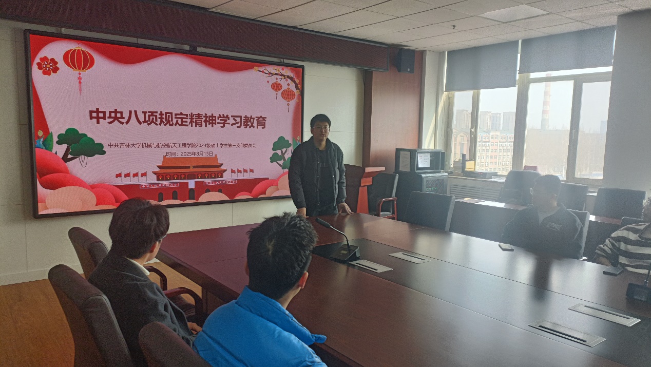为进一步巩固拓展落实中央八项规定精神成果,持之以恒正风肃纪,4月10日,公司组织研究生党员在机械馆529室开展深入贯彻中央八项规定精神学习教育活动。活动由2023级硕士生第三党支部书记余乐主持。