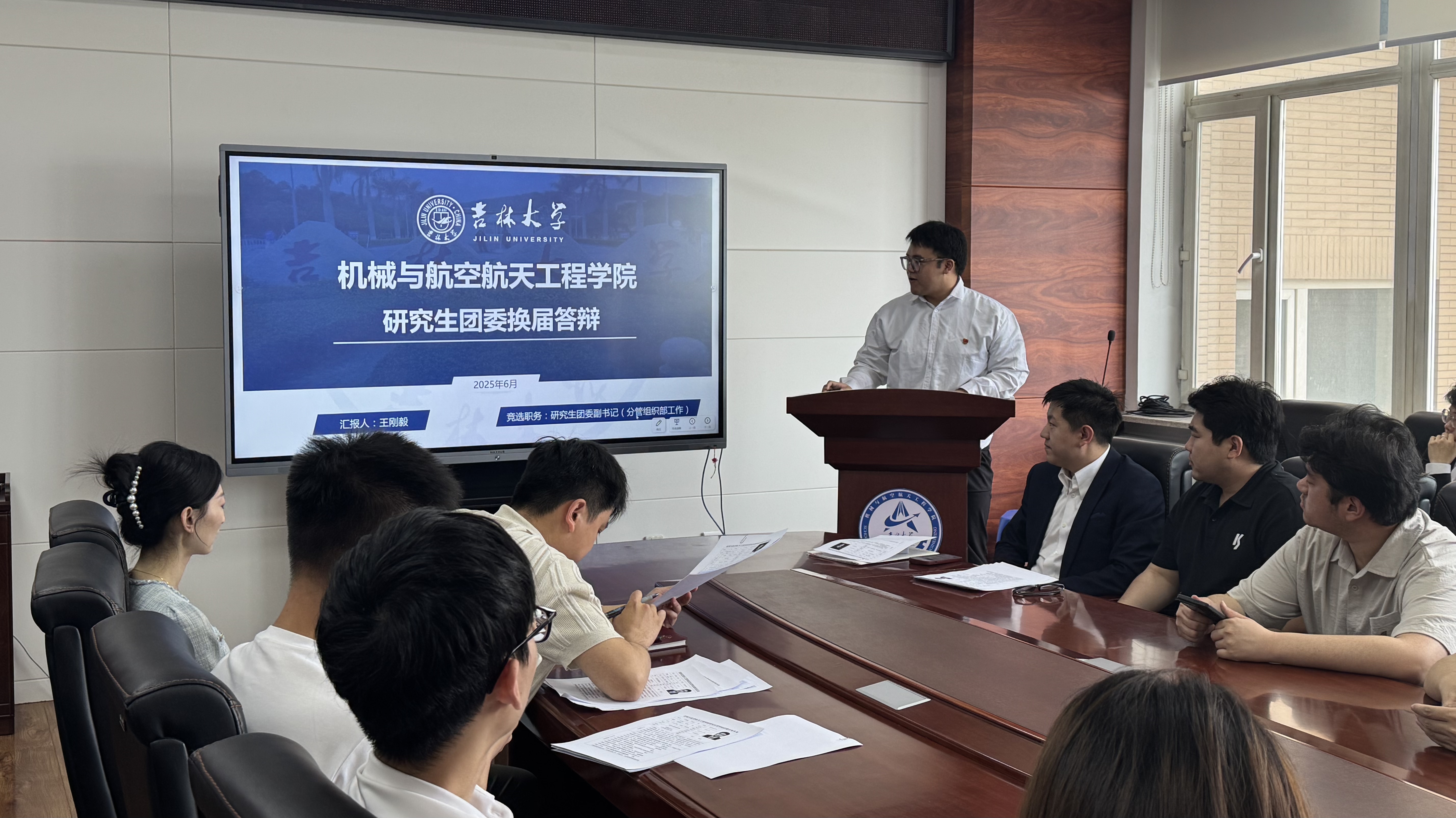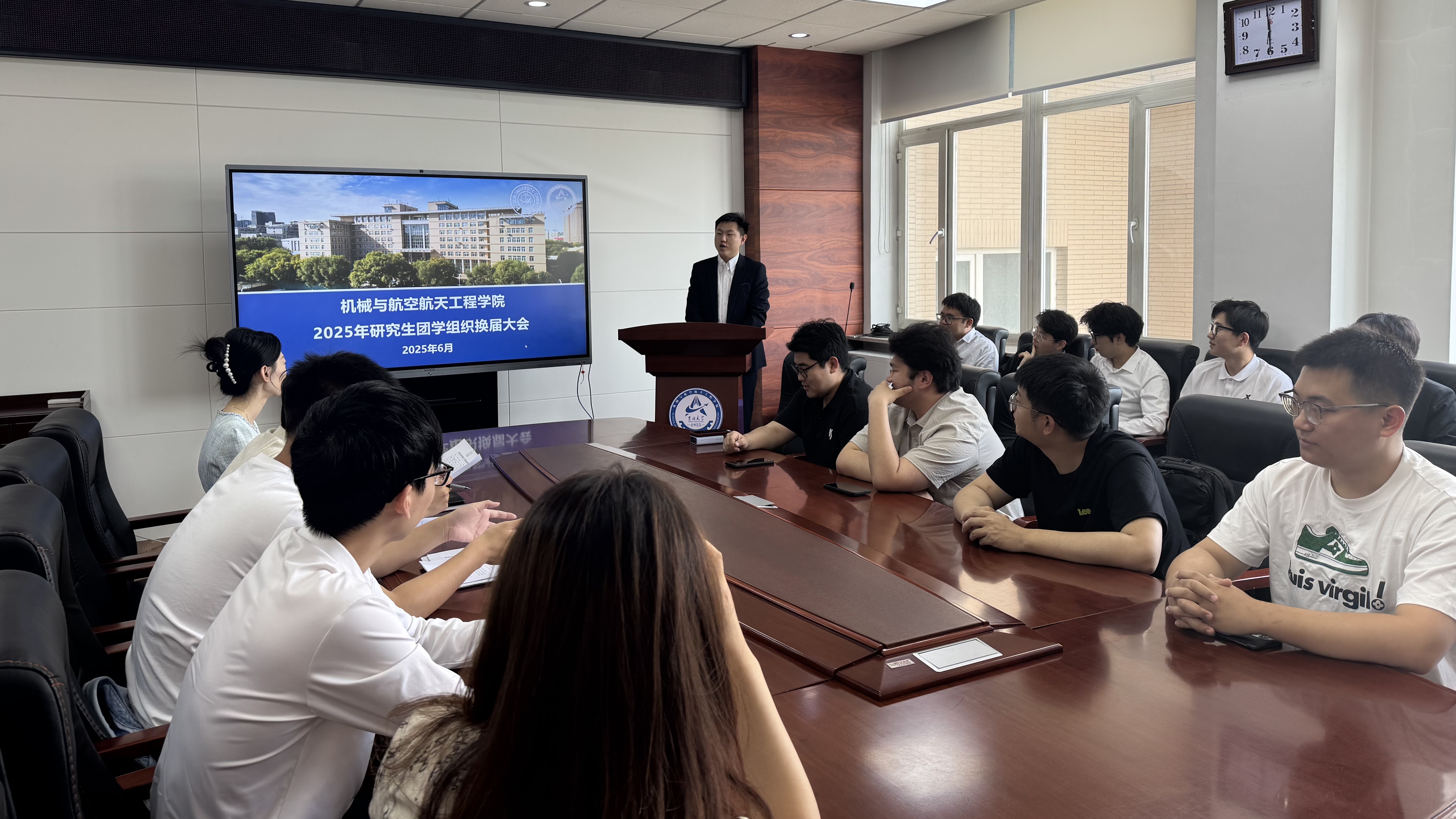 为深化研究生团学组织建设,确保团学工作规范高效运行,6月13日上午,公司在机械馆517室召开2025年研究生团学组织换届大会。研究生辅导员张瑛、曲艺,以及团学组织全体成员参加会议,研究生会执行主席任沭安主持本次大会。
