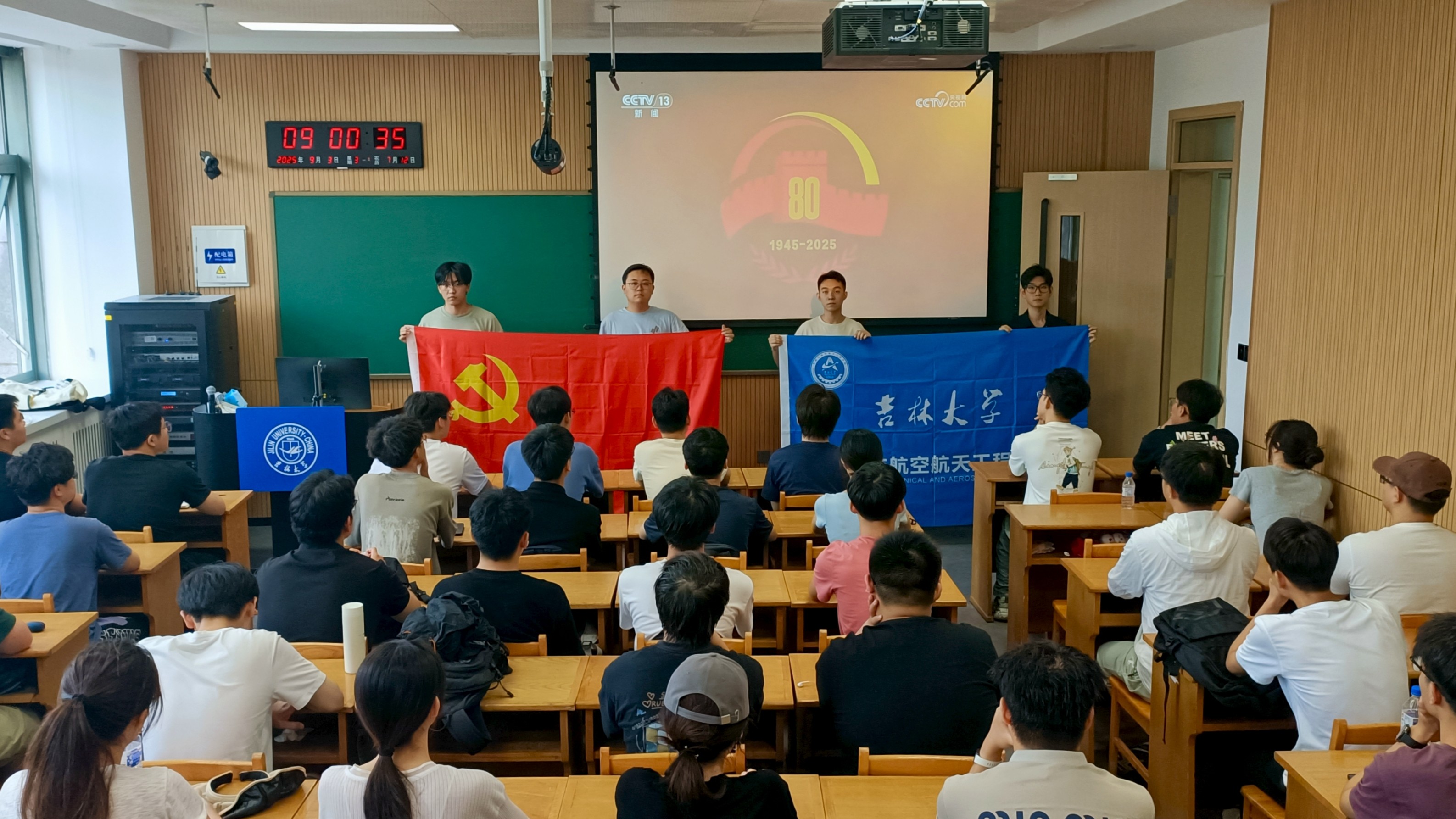 为纪念中国人民抗日战争暨世界反法西斯战争胜利80周年,弘扬伟大抗战精神,9月3日上午9时,公司于逸夫教育大楼A301室组织研究生党员共同观看中国人民抗日战争暨世界反法西斯战争胜利80周年大会直播。