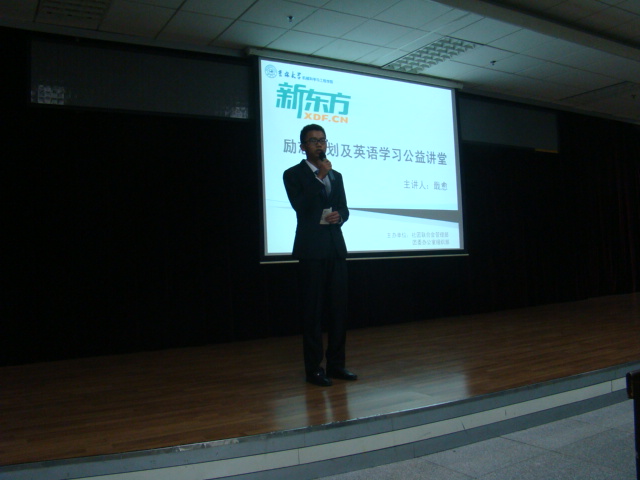 14日晚六点,讲座准时开始,现场座无虚席。面对满怀梦想又不乏困惑的大学新生,新东方国外考试部部长戢益老师细细回味着自己刚刚迈入大学时的各种窘迫与挣扎,回顾自己战胜自卑的心路历程,通过毫不掩饰的自我展示为同学们提炼成长的经验。她旁征博引,妙语连珠,把企业文化与人生成长成才结合起来,以形象幽默、简洁有力的语言,使全场同学于笑声中领悟道理,于简单中体味智慧人生。当谈到当今社会的新变化、新机遇、新挑战时,戢益老师深情寄语现场同学,要把握人生机遇,提高自身素质,并针对当前出国留学问题给出了许多自己的建议,字字箴言,见解独到。精彩纷呈的演讲赢得了同学们经久不息的掌声。她持之以恒的人生态度、遭遇挫折永不止步的心态更是为广大学子树立了一个健康积极对待人生的榜样。