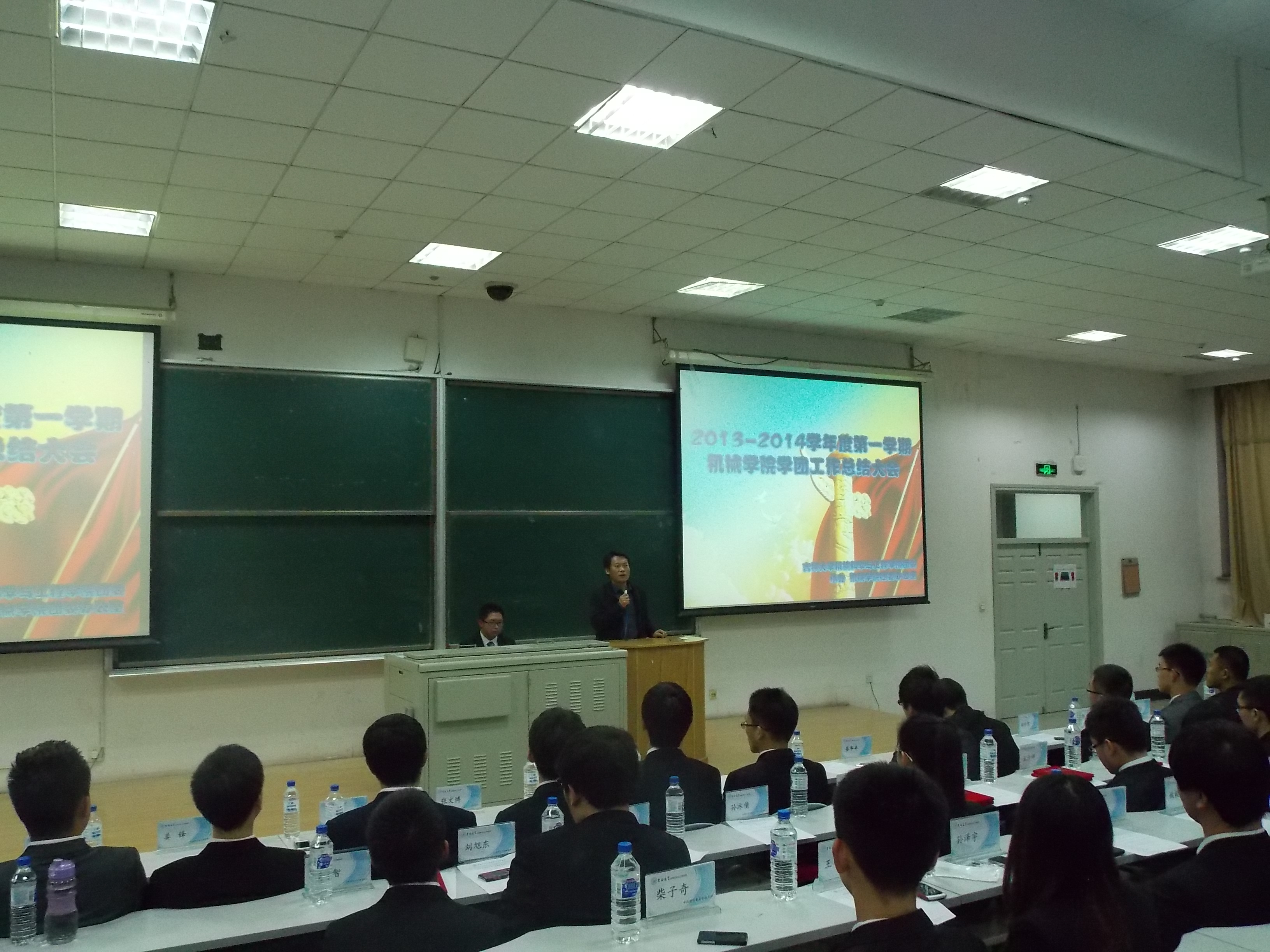 伴随着中国共青团团歌,大会在庄严肃穆的气氛中拉开了帷幕。主席团成员对丰富多彩的员工活动、精益求精的联系我们、推陈出新的组织策划进行了总结,肯定了大家这一学期的努力成果,同时又对以往工作的不足进行了深刻地分析。姚老师在肯定联系我们的同时认为,“把有意义的活动办得有意思”是未来员工工作的重点,同时,学团应该加大服务同学的力度,当好公司与员工之间的桥梁,增进理解与信任。并且身为员工干部更应该品学兼优,有良好的学习品质和工作能力,为同学们树立一个良好的榜样。郑福胜副书记在讲话中肯定了公司员工干部在本学期辛勤付出所取得的成绩,希望员工干部在今后的工作中强化工作纪律,以学风建设工作为重中之重,全体员工干部要参与其中,起示范和引领作用。同时也提出了下学期员工工作的重点方向,对即将推行的活动项目申报制度进行了说明。