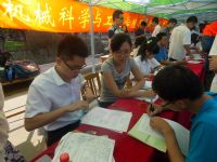 横幅下的前台女生们举止端庄、谈吐文雅。她们一边为新生办理员工卡、银行卡等相关手续,一边发放寝室钥匙、相关档案,同时又向新生家长介绍近日的具体流程安排。24小时昼夜轮流值班,一份份档案在她们手中传递,一个个疑问被她们细心解答。她们以一种朴实认真的态度坚守在自己的岗位上。简洁清晰的言语、吃苦耐劳的精神不仅让大家看到了她们对2014级新同学的热烈欢迎,更展示了机械学子严谨认真、真诚热情的精神风貌。