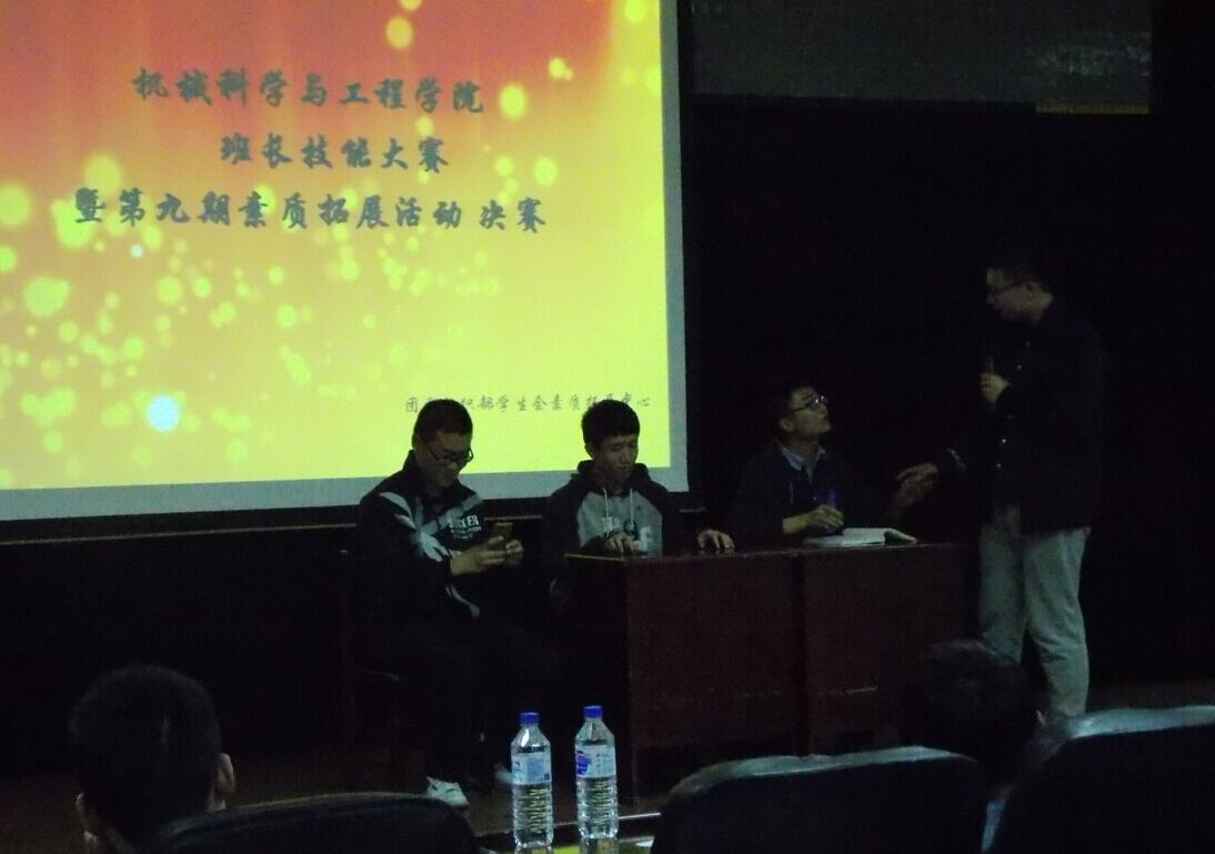 为提高bevictor伟德2014级各班班长的综合素质,锻炼各班班长的表达能力、社交能力、实践能力,培养各班班长协调和处理人际关系的艺术与技巧,使其能充分展示自己的风采面貌,成为一名经得起考验的合格班长,bevictor伟德团委组织部、员工会素质拓展中心于24日晚在机械材料馆8楼学术报告厅联合举办了此次“班长技能大赛”决赛。bevictor伟德团委负责人夏禹老师、主席团部分成员、2014级全体班长参加了本次比赛。