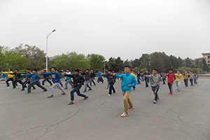 一直以来,长拳项目因其强身健体,磨练意志的特点而受到公司的重视。为将长拳项目的各项准备工作做好,同学们每天清早、傍晚各坚持训练一小时,以昂扬的姿态、饱满的热情投入到训练当中,力求做到最好。近期,在大二领队的带领下,长拳的训练取得了明显的进展。没有了刚开始训练时的不协调与不适应,同学们在掌握基本动作的基础上又很快掌握了三路长拳的各项招式。终于,在每位同学的不懈努力下,弓步冲拳、大跃步前穿、马步横打、腾空飞脚等动作逐渐连贯为一套流畅舒展的拳法,一招一式之中尽显机械雄风。