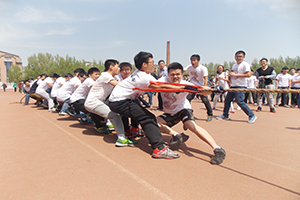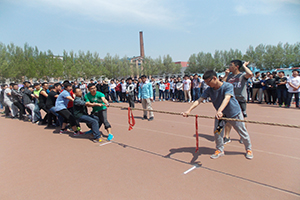 此次比赛共有15支队伍参赛,以班级为单位。比赛实行三局两胜制,并用抽签分组决定出场顺序。首轮抽签,哨声响起,双方队员都高呼着“一二,一二”,紧握长绳,调动起了全身力量,而班级其他同学也组成拉拉队为本班队伍加油。一时间号子声、呐喊声此起彼伏,飘荡在整个赛场上空。紧接着1/4决赛,1/2决赛如火如荼进行着,其中4班与3班不负众望,杀入了最后的决赛。短暂的调整之后,决赛开始,同学们一个个肌肉紧绷,咬紧牙关,誓不放弃,突然4班队员猛力一拉,绳子有了移动的趋势,队员们马上抓准时机,步步后挪,厮杀过后,哨声响起,4班获胜。