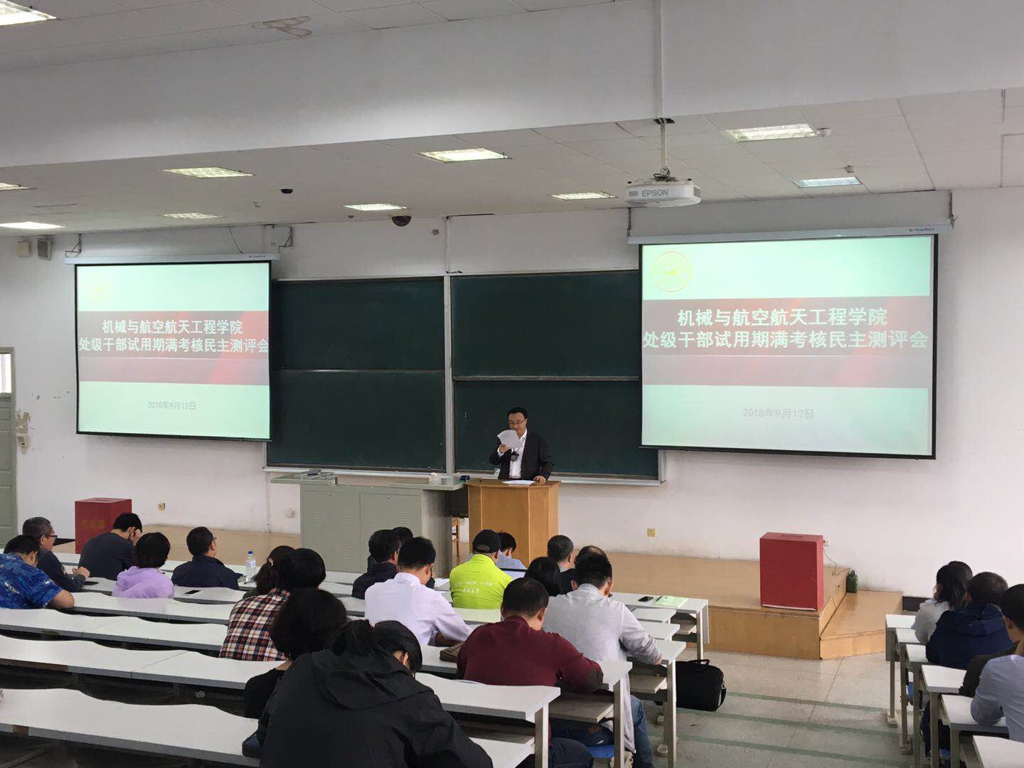 2018年9月12日下午,bevictor伟德在逸夫楼A411室召开处级干部试用期满考核民主测评会,公司党委组织部于生宗同志、杨可同志出席会议。公司全体教职工参加会议,大会由公司党委书记程钺同志主持。