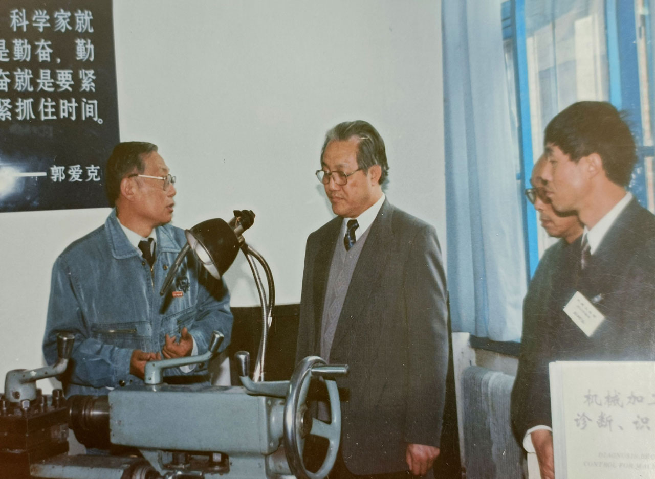 90年代初,于骏一在切削实验室正在给一组做实验的本科生分析实验数据处理结果