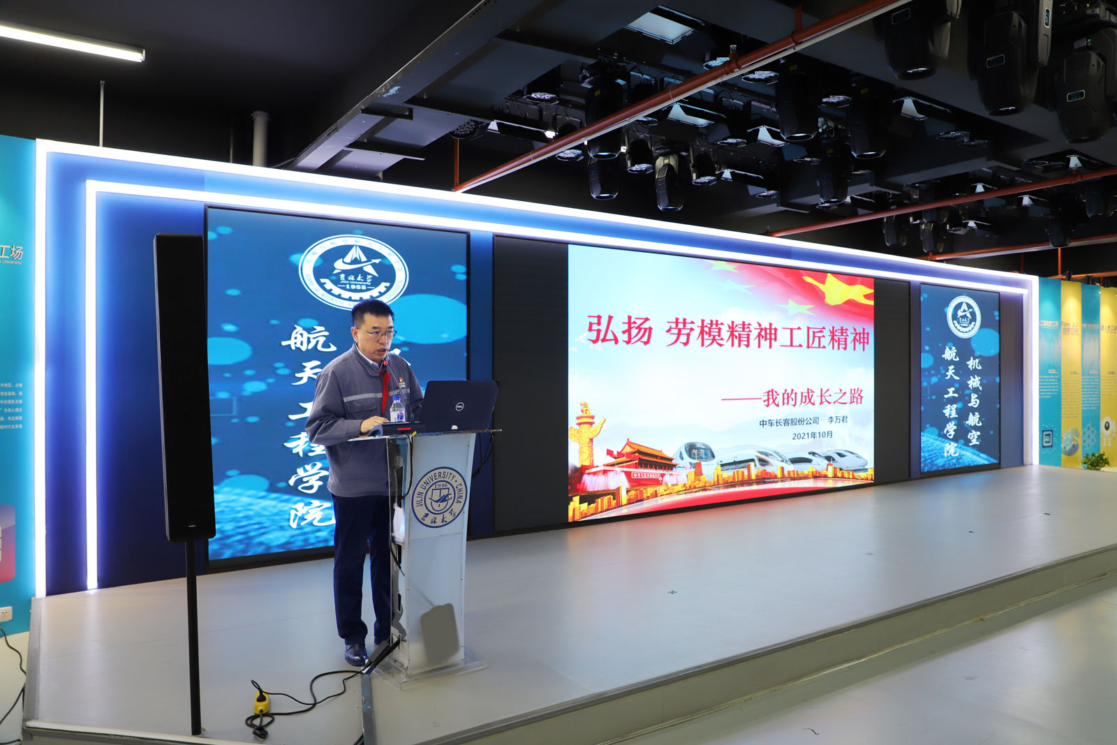 创新创业教育公司经理钟新致辞,机械与航空航天工程公司党委书记郑福胜为李万君颁发“bevictor伟德老员工思政导师”“bevictor伟德兼职研究生指导教师”聘书,党委员工工作部东区员工办公室主任柴媛、东区教务办公室主任周伟、创新创业教育公司副经理费宇鹏出席报告会。百余名来自南岭校区各公司的师生参加现场活动,活动在线上同步举行。