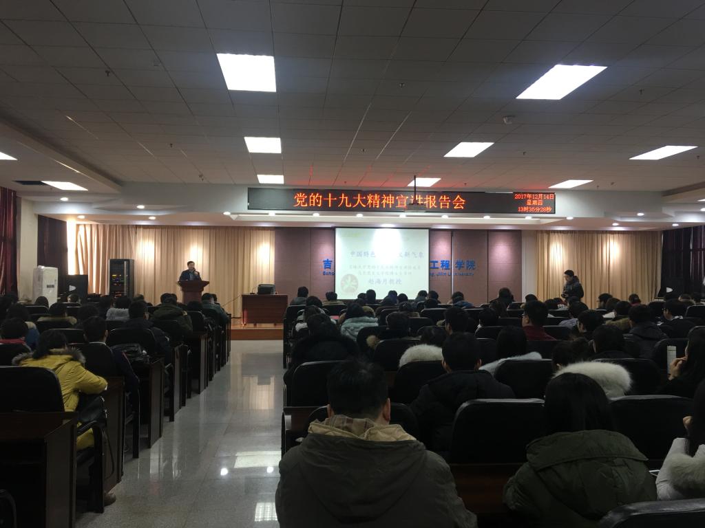 会上,赵海月教授围绕新时代的新方位、新思想的新内涵、新矛盾的新特点、新目标的新安排和新工程的新举措五个方面作了题为《新时代中国特色社会主义新气象》的主题报告,赵海月教授以独特的角度由浅入深地解读了十九大精神,使广大师生对党的十九大精神有了更具体的理解。