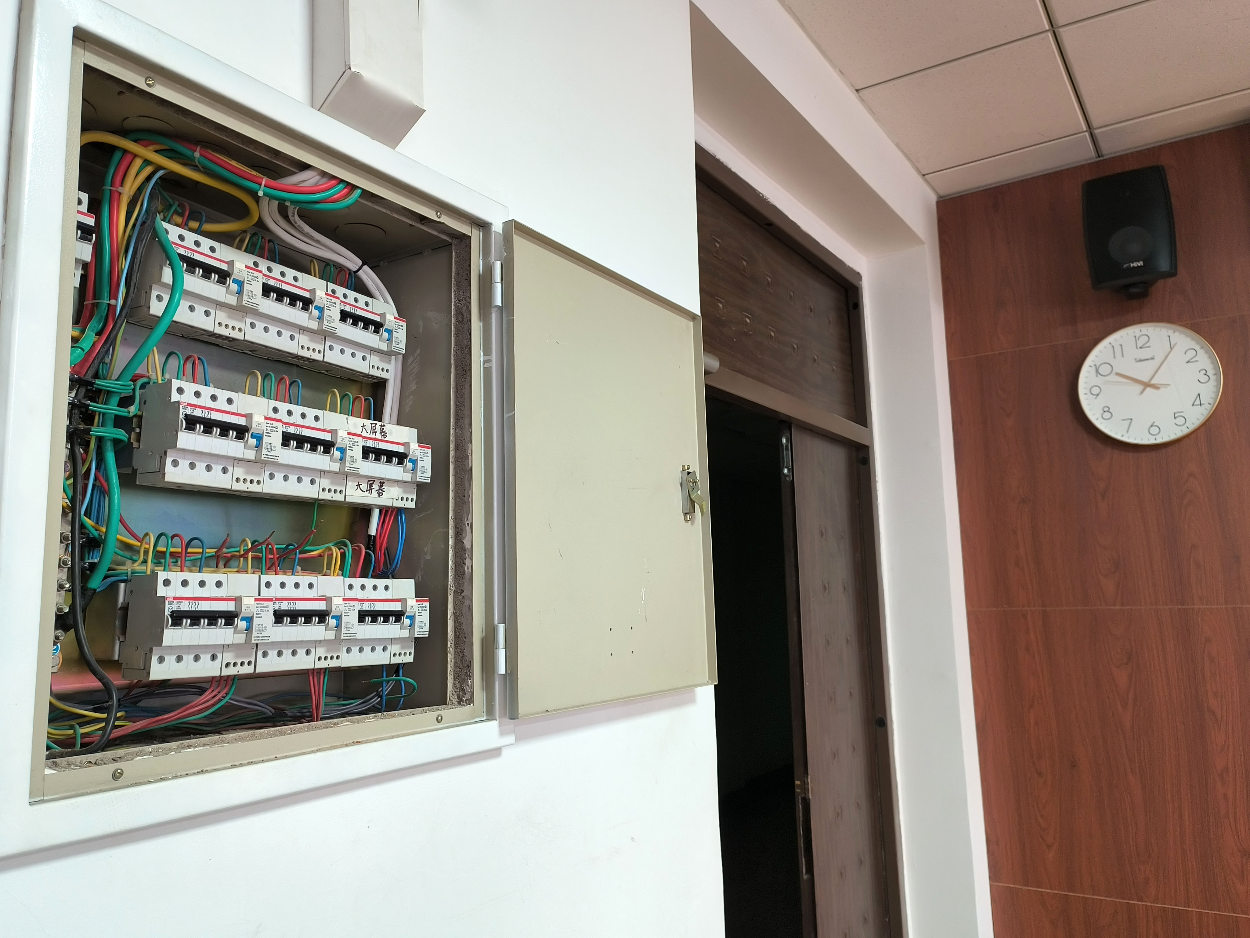 电源开关在门口电箱里,有标签。推上为供电,垂下为断电。默认为断电,用后请断电。