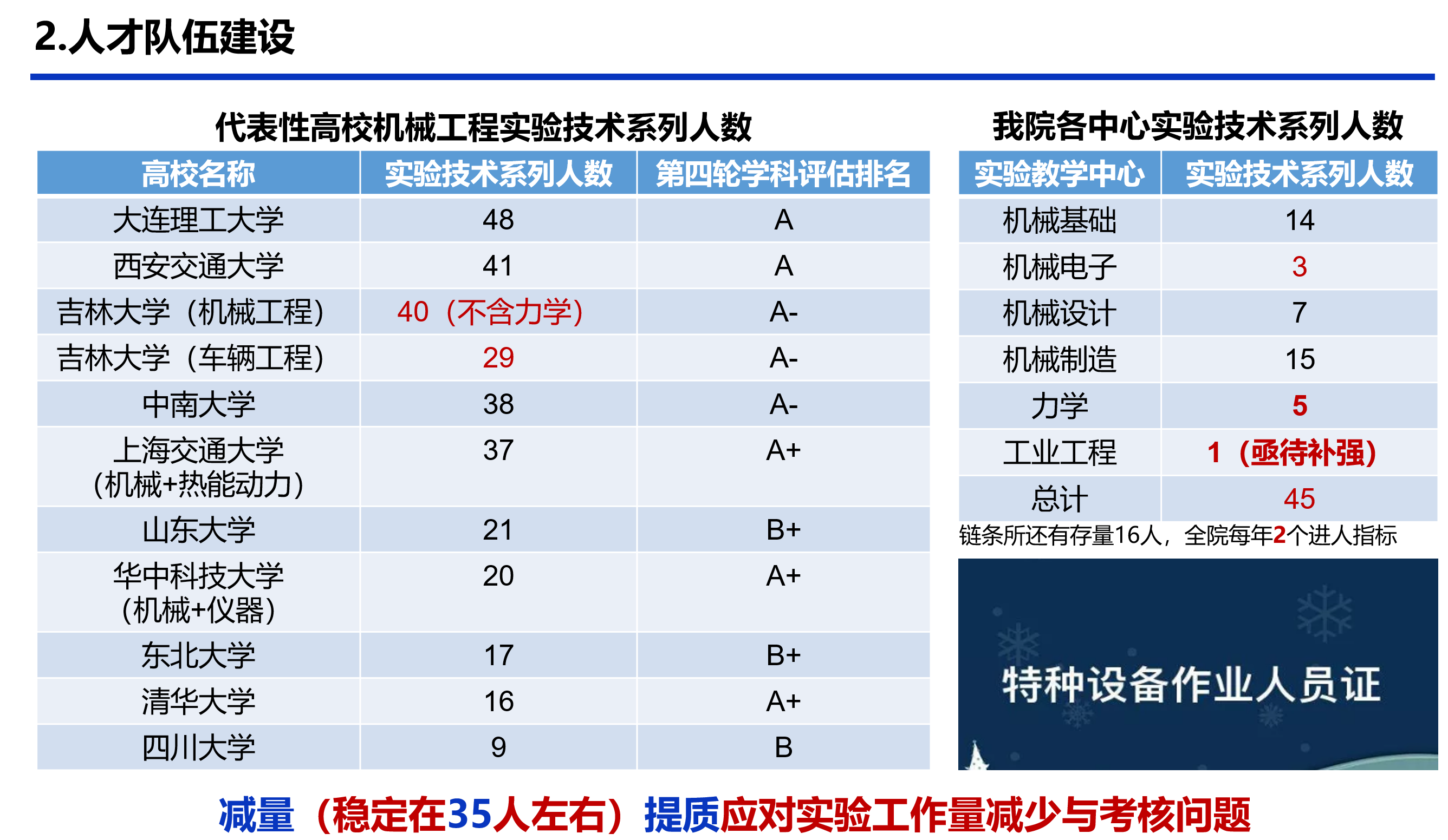 首先,左文杰对公司实验室位置分布、实验教师队伍数量、实验教学工作量以及仪器设备总值等实验室运行现状进行了简要汇报,同时指出目前实验室主要存在实验室布局分散,各实验教学中心发展不均衡,实验教学水平参差不齐,信息化水平落后等问题。并就公司未来实验室人才队伍建设方面的几点思考展开了详细论述,对比了国家同类高校机械工程学科的实验技术队伍人数和第四轮学科评估的排名,发现我公司实验教学队伍在学科分布上存在严重不平衡现象,并且研究员、高级工程师等高级职称占比过低,公司连续几年没有工程实验系列人员晋升为正高级职称,实验教学队伍存在躺平现象。公司需要主动作为,鼓励实验教师主动提升业务能力,从而整体推动团队建设发展。接着,传达了教学部对于高等公司实验室安全检查的相关要求,部署了公司各层实验室安全管理工作职责。最后,针对2022-2023年度秋季学期实验室各项工作进行了详细安排,从实验教学数字化建设,利用数字化促进线下实验的升级,实验耗材经费分配及执行和实验室安全标识与展板的制作等方面,全面布置了新学期的工作方向,力争实验教学及安全管理工作效果有效稳步提升。